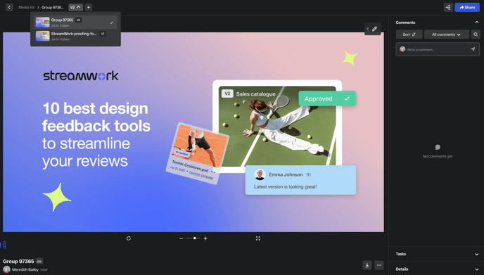 2. Open the asset in the Media Viewer. Select the version of the media you would like to download. You can select the version by clicking on the version picker in the top left corner of the Media Viewer.