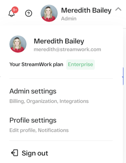 1. In StreamWork, click your avatar and profile photo in the top-right corner of your account.
