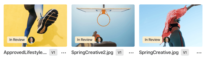 4. You can also see if media has been routed for approval by looking at the media thumbnail in the Project. If the media is currently being reviewed, an "In Review" label will appear on the media. Media can receive four statuses: In Review, Approved, Changes Required, Approved with Feedback.