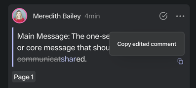 - Copy the edited text from the comment by clicking the copy/paste icon in the lower right of the comment.